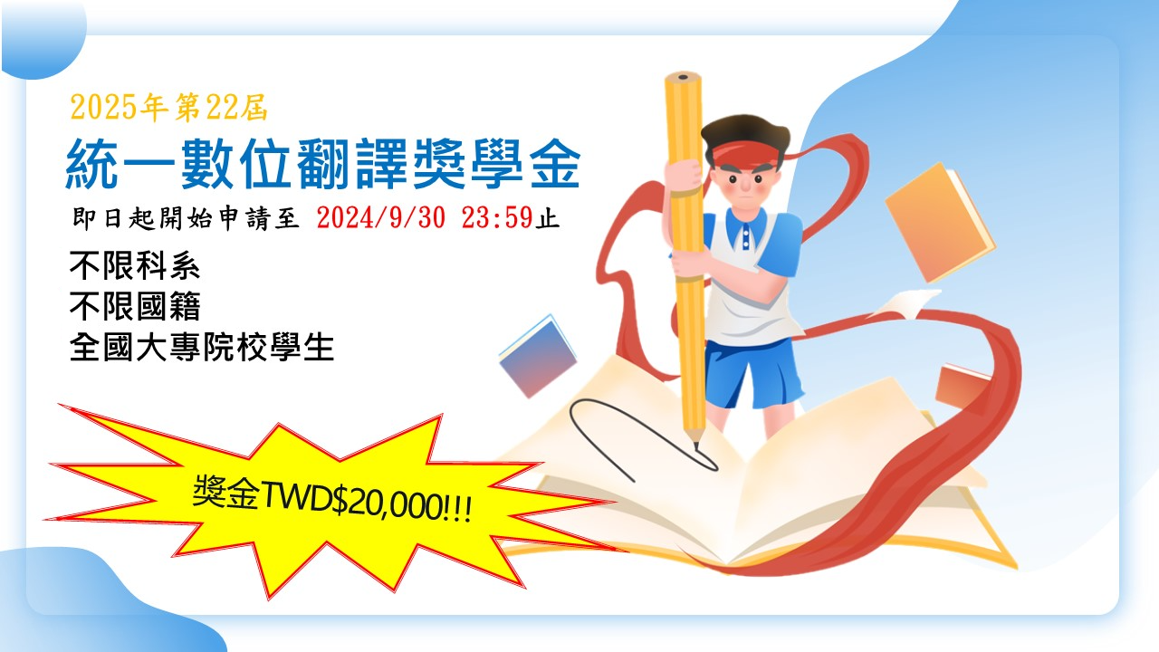 全台獨一無二的「翻譯獎學金」申請正式開跑囉!只要是具有台灣各