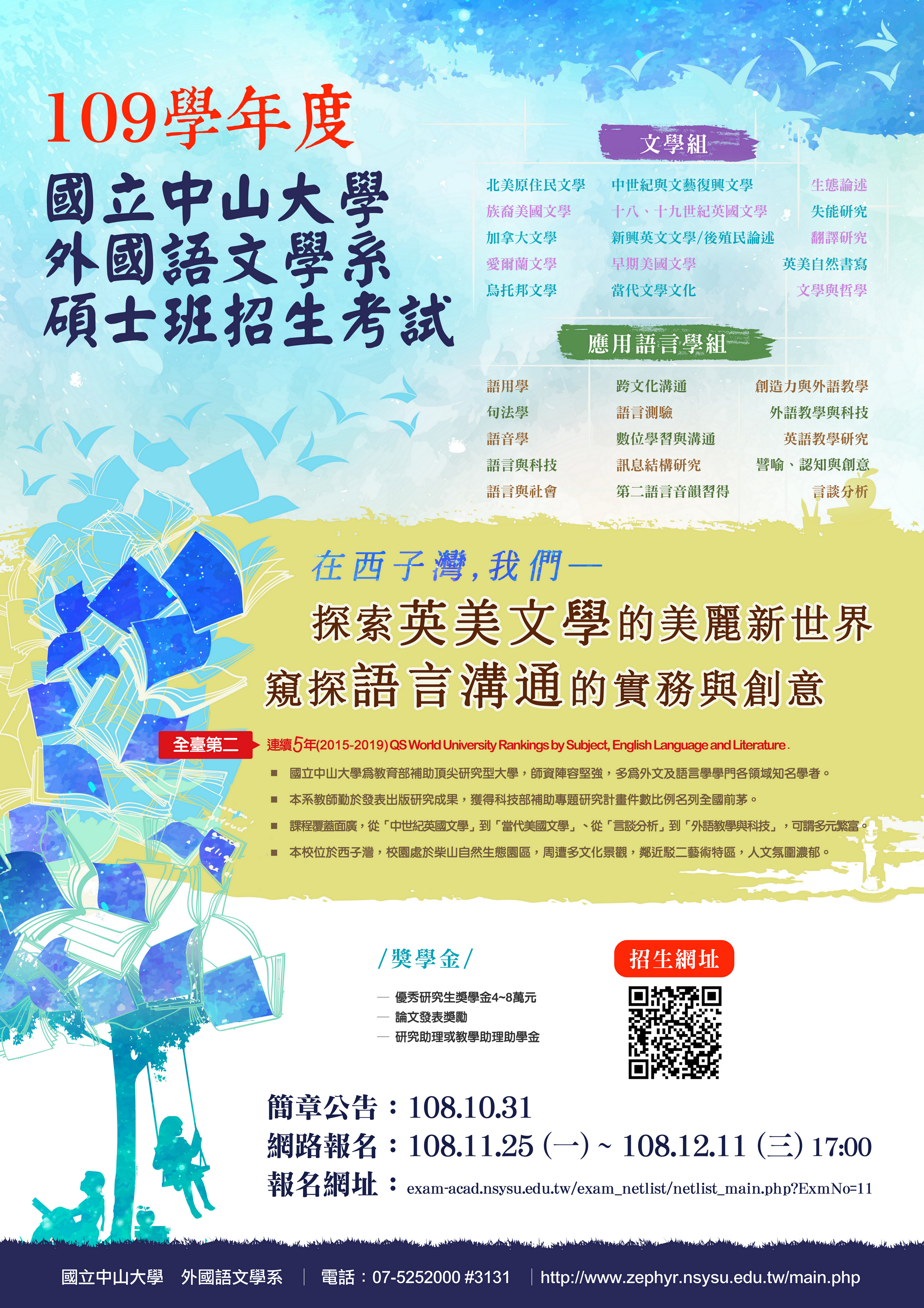 <中山大學外國語文學系109學年度碩士班招生考試公告>